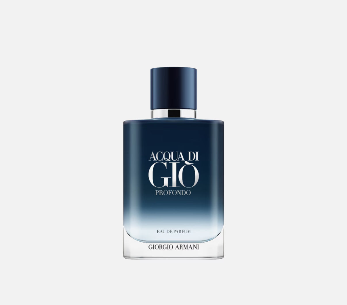 Voor de evolutie van Acqua di Giò onthult Giorgio Armani een moderne nieuwe fles, nu ontworpen om navulbaar te zijn. De flacon legt de diepten van de zee vast met een diepblauwe tint voor de dop, voorzien van het reliëf van het Giorgio Armani-monogram. De naam Giorgio Armani is nu gepositioneerd aan de basis van de fles.Als onderdeel van Giorgio Armani's toewijding aan een betere toekomst is het ontwerp van de Acqua di Gìo Profondo flacon navulbaar: elk formaat is ontworpen om thuis losgeschroefd en bijgevuld te worden met de apart verkrijgbare 150 ml navulfles.
