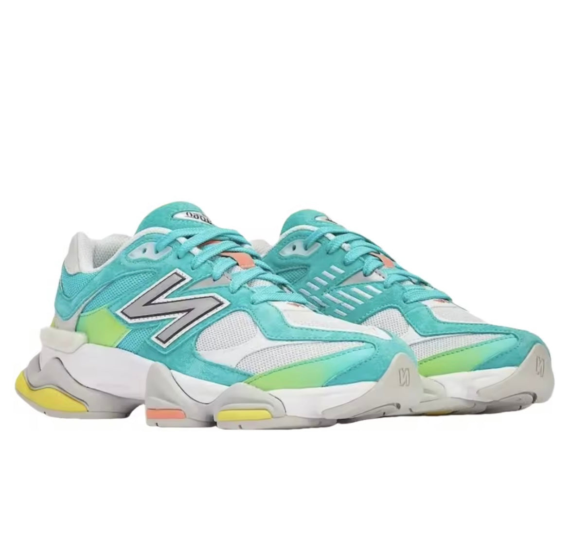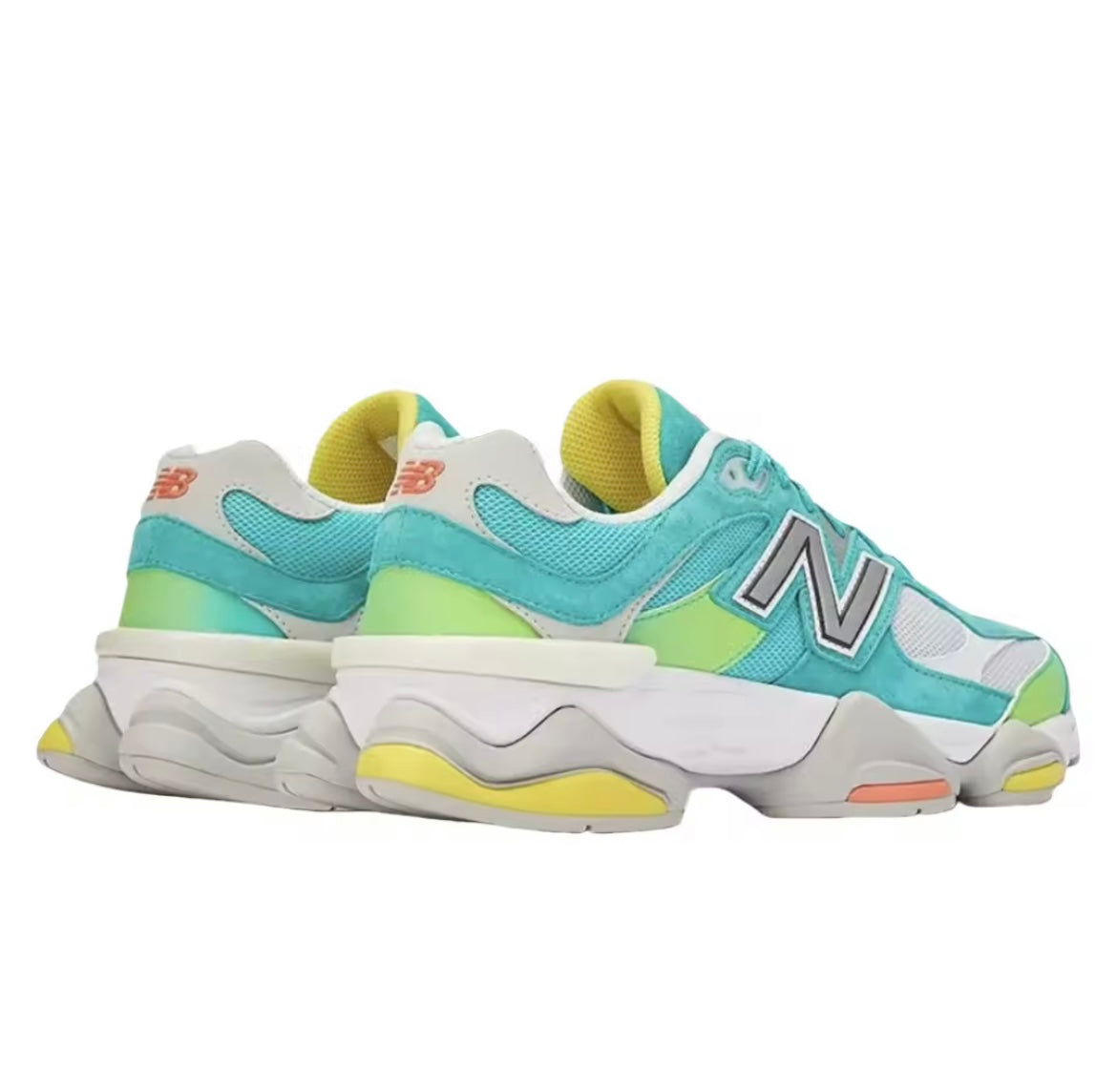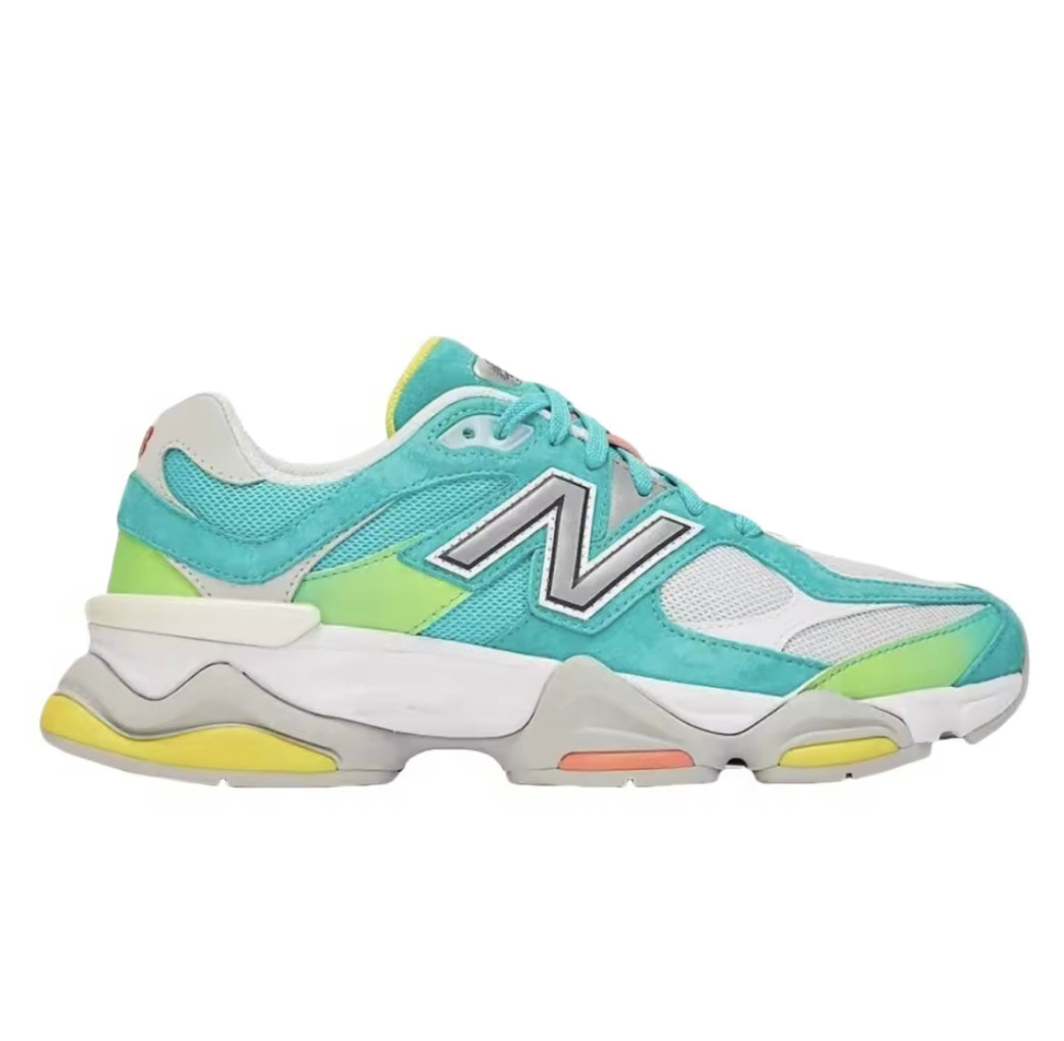 De 9060 is een nieuwe uitdrukking van de verfijnde stijl en het innovatieve ontwerp van de klassieke 99X serie. De 9060 herinterpreteert bekende 99X elementen met een verwrongen gevoeligheid geïnspireerd door de trots futuristische, zichtbare tech esthetiek van het Y2K tijdperk. Swaybars, afkomstig van de 990, zijn uitgebreid en worden door het hele bovenwerk gebruikt voor een gevoel van zichtbare beweging, terwijl golvende lijnen en opgeschaalde proporties op een gebeeldhouwde pod-tussenzool een overdreven nadruk leggen op de bekende dempingsplatforms van ABZORB en SBS.