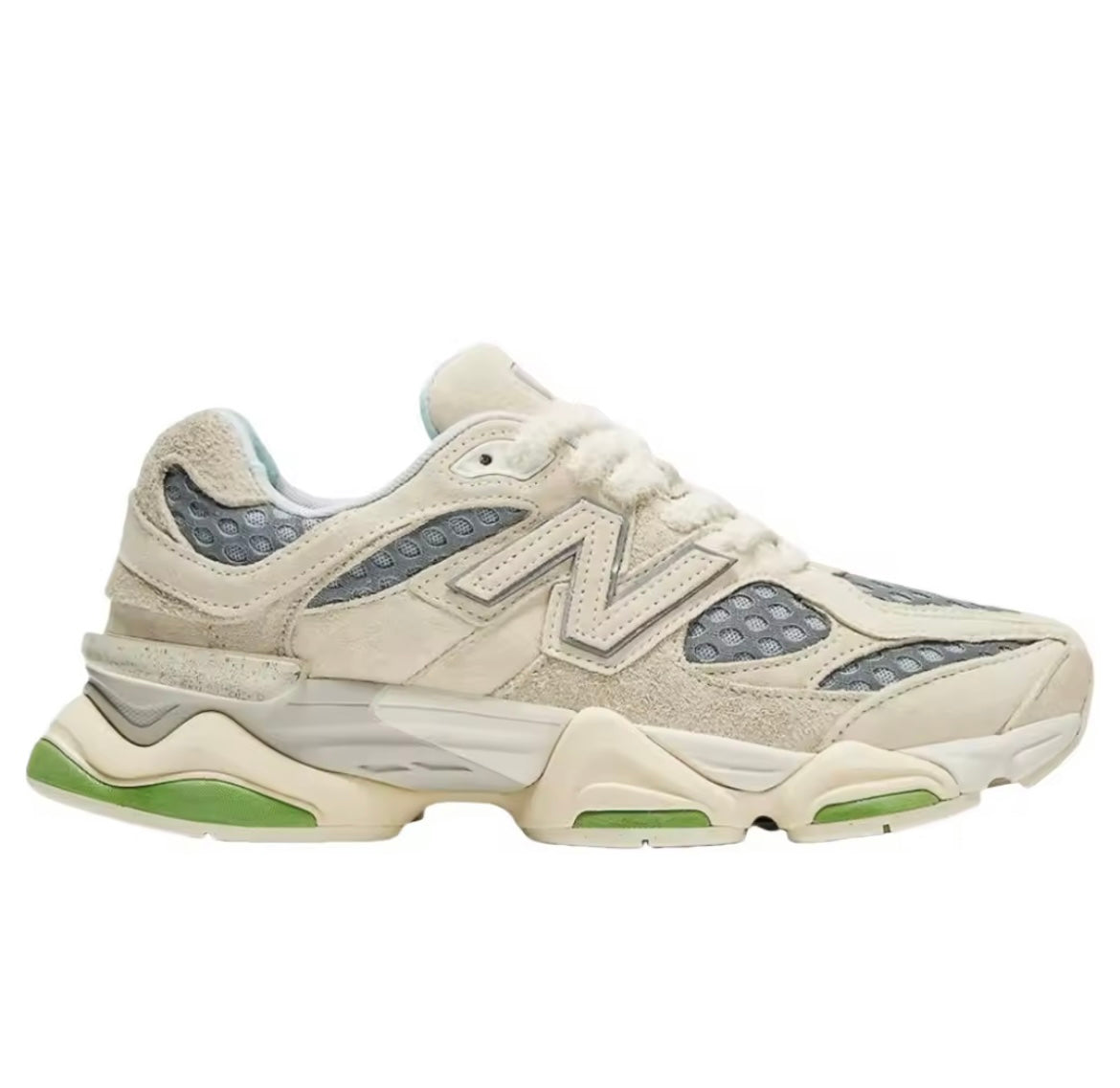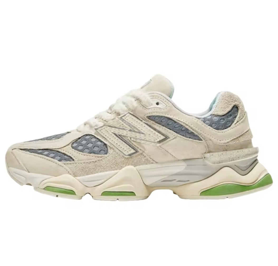 De 9060 is een nieuwe uitdrukking van de verfijnde stijl en het innovatieve ontwerp van de klassieke 99X serie. De 9060 herinterpreteert bekende 99X elementen met een verwrongen gevoeligheid geïnspireerd door de trots futuristische, zichtbare tech esthetiek van het Y2K tijdperk. Swaybars, afkomstig van de 990, zijn uitgebreid en worden door het hele bovenwerk gebruikt voor een gevoel van zichtbare beweging, terwijl golvende lijnen en opgeschaalde proporties op een gebeeldhouwde pod-tussenzool een overdreven nadruk leggen op de bekende dempingsplatforms van ABZORB en SBS.